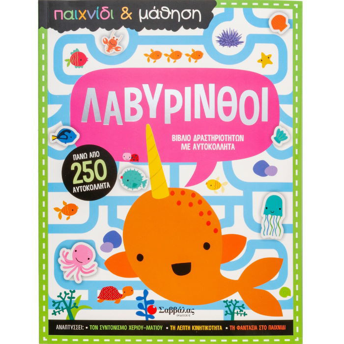Διασκέδασε με τους λαβύρινθους, τα αυτοκόλλητα, τις αποσπώμενες φιγούρες, τα παιχνίδια και τις δραστηριότητες που θα βρεις σ’ αυτό το βιβλίο.