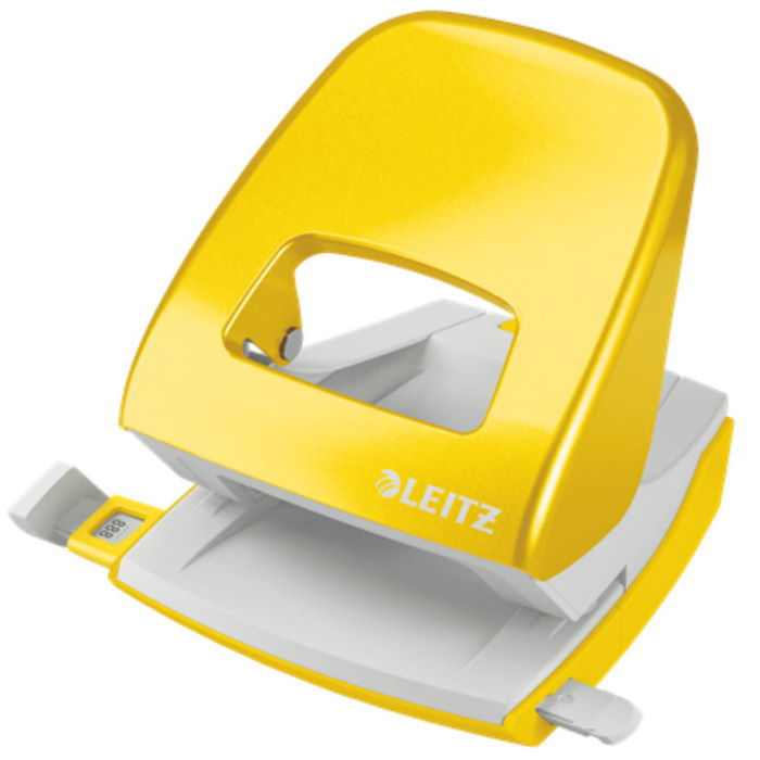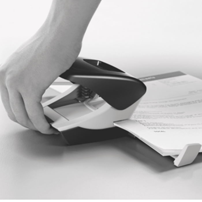 Περφορατέρ από συμπαγές μέταλλο και δοχείο χαρτιού που αδειάζει εύκολα. Διαθέτει πλαστική βάση για προστασία από γρατζουνίσματα στο έπιπλο και οδηγό για σωστή διάτρηση!