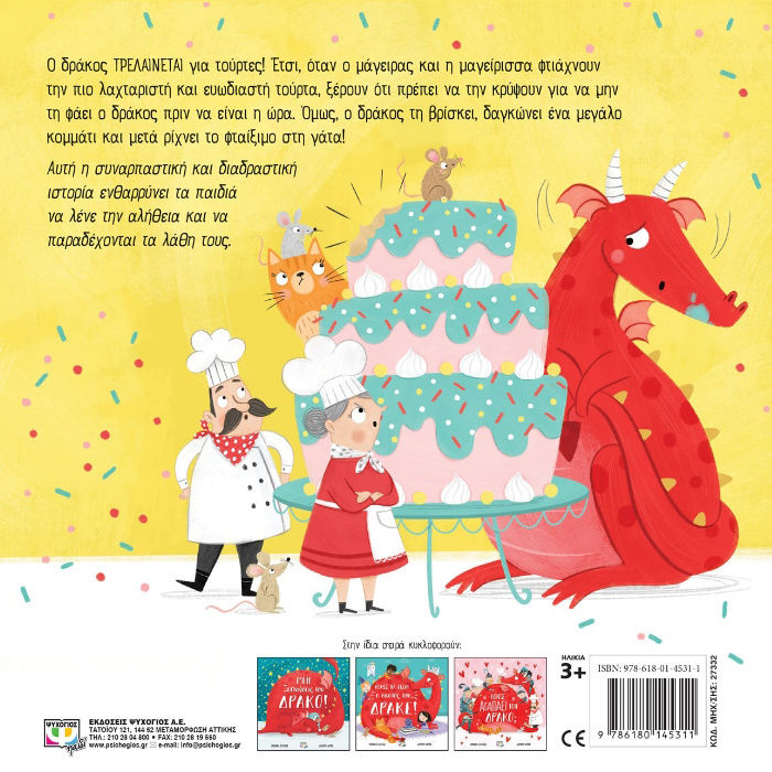 Ο δράκος ΤΡΕΛΑΙΝΕΤΑΙ για τούρτες! Έτσι, όταν ο μάγειρας και η μαγείρισσα φτιάχνουν την πιο λαχταριστή και ευωδιαστή τούρτα, ξέρουν ότι πρέπει να την κρύψουν για να μην τη φάει ο δράκος πριν να είναι η ώρα. Όμως, ο δράκος τη βρίσκει, δαγκώνει ένα μεγάλο κομμάτι και μετά ρίχνει το φταίξιμο στη γάτα! Αυτή η συναρπαστική και διαδραστική ιστορία ενθαρρύνει τα παιδιά να λένε την αλήθεια και να παραδέχονται τα λάθη τους.