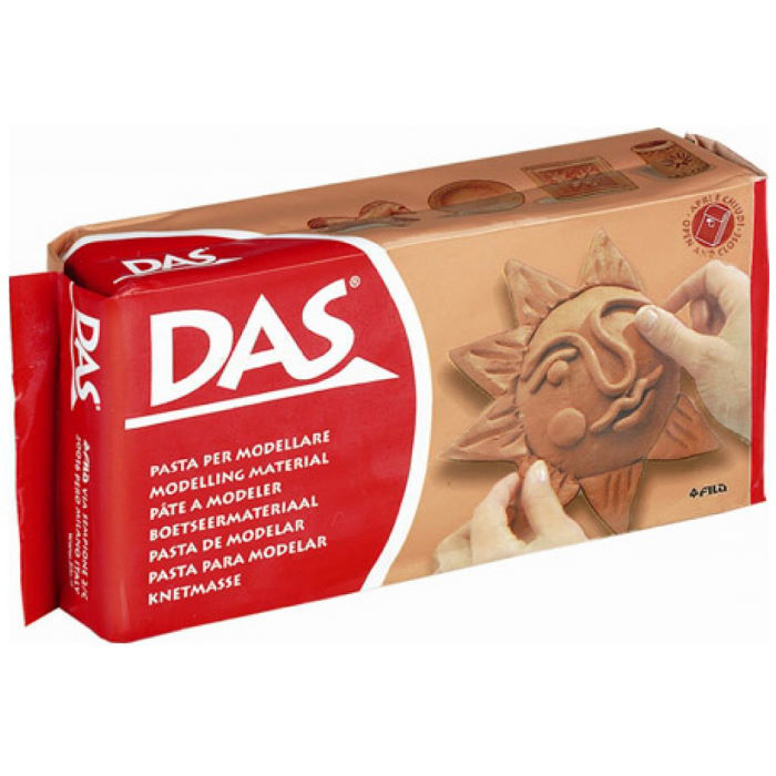 Η συσκευασία περιέχει πηλό DAS μοντελισμού αυτοξηρόμενο σε καφέ χρώμα που στεγνώνει με τον αέρα. Ο πηλός είναι έτοιμος για χρήση με το άνοιγμα της συσκευασίας. Στεγνώνει σταδιακά στον αέρα και μπορεί να χρησιμοποιηθεί σε καλούπια αλλά και για γλυπτική. Μπορεί να ζωγραφιστεί με όλων των ειδών τα χρώματα.