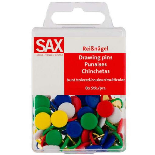 Πινέζες Sax 811-02 χρωματιστές μεταλλικές πινέζες άριστης ποιότητας για κάθε χρήση. Διατίθονται σε πακέτο των 80 τεμαχίων.