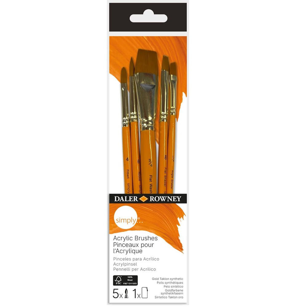 Σετ πινέλα ακρυλικών Daler Rowney Simply 5 τεμαχίων με συνθετική τρίχα Golden Taklon και κοντή λαβή.