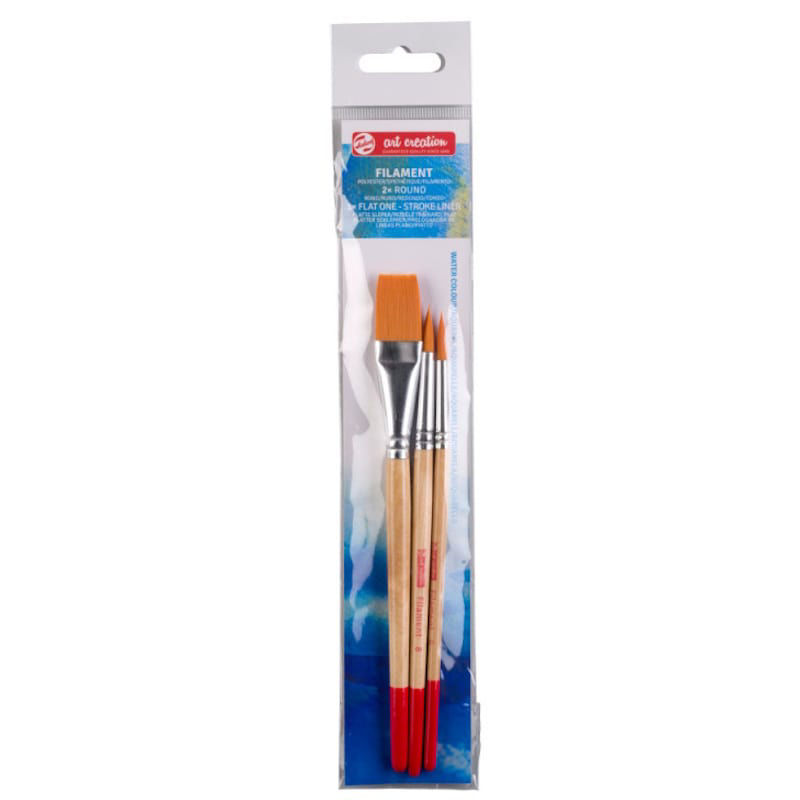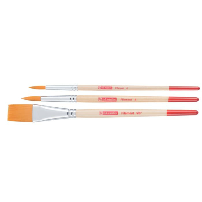 Αυτό το σετ 3 πινέλων πολυεστέρα μπορεί να απορροφήσει πολύ νερό, γεγονός που το καθιστά κατάλληλο για πολύ αραιωμένα χρώματα όπως ακουαρέλες και μελάνια. Το σετ περιέχει τους εξής τύπους και μεγέθη: 2 στρογγυλές βούρτσες στα μεγέθη 6 και 8, βούρτσα επίπεδης επένδυσης σε μέγεθος 5/8”.