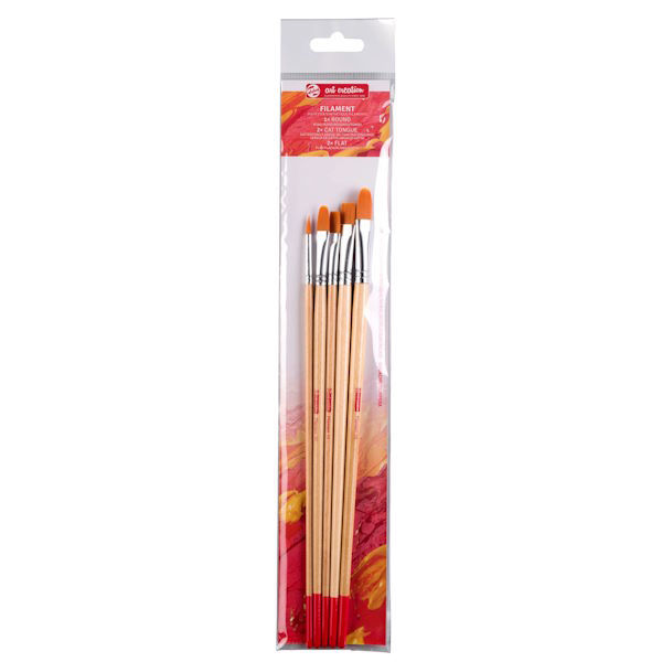 Αυτό το σετ πινέλων από συνθετική τρύχα είναι κατάλληλο για χρώμα λαδιού, ακρυλικό χρώμα και γκουάς και περιέχει τους ακόλουθους τύπους και μεγέθη: Στρογγυλά πινέλα σε μέγεθος 6, Πινέλό γλώσσας γάτας σε μεγέθη 10 και 14, Επίπεδες πινέλα σε μεγέθη 10 και 14