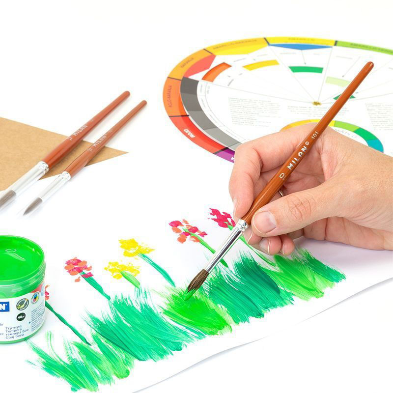 Σύνθεση: 70% φυσική τρίχα κατσίκας + 30% συνθετική. Κατάλληλο για τεχνικές ακουαρέλας και υδατικής ή τέμπερας.