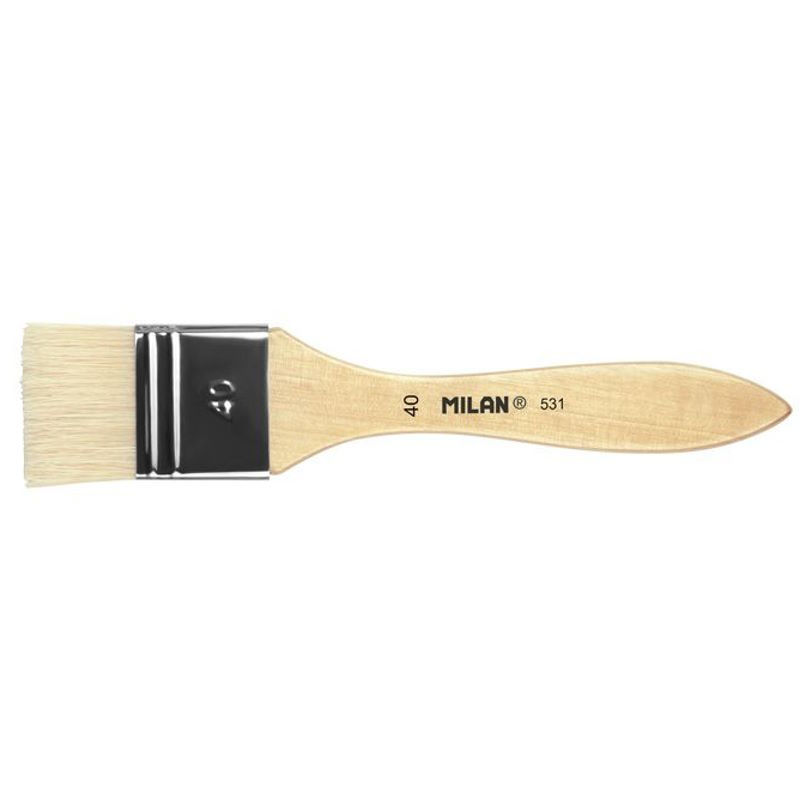 Φαρδιά βούρτσα με κοντή ξύλινη λαβή. Φυσικό χρώμα βερνικωμένο φινίρισμα και λάστιχο αλουμινίου. Σύνθεση: φυσική τρίχα γουρουνιού Chungking. Κατάλληλο για βαφή με λάδι και ακρυλικό, κόλλες και βερνίκια. Πλάτος πέλους: 40 mm. Μήκος μαλλιών: 31,6 mm. Μήκος βούρτσας: 207 mm.
