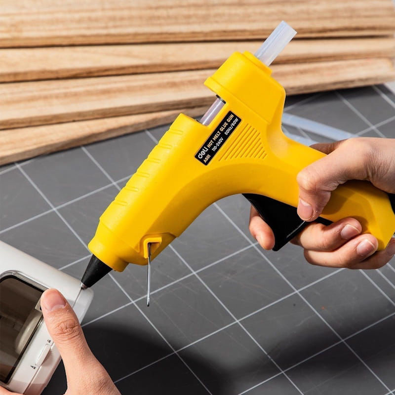 Το πιστόλι σιλικόνης Deli 60W είναι ηλεκτρικό εργαλείο θερμής κόλλησης για stick σιλικόνης διαμέτρου 11mm, κατάλληλο για χειροτεχνία, κατασκευές και μικροεπισκευές. Η ισχύς των 60W εξασφαλίζει γρήγορη θέρμανση και σταθερή ροή σιλικόνης κατά τη χρήση. Στη συσκευασία περιλαμβάνονται 3 sticks σιλικόνης για άμεση έναρξη εργασίας.