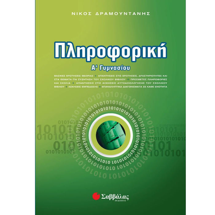 Το βιβλίο αυτό αποτελεί ένα χρήσιμο βοήθημα για το μάθημα της Πληροφορικής της Α? Γυμνασίου. Θα βοηθήσει τον μαθητή να κατανοήσει τις βασικές έννοιες της Πληροφορικής και να εμπλουτίσει τις γνώσεις του σε σύγχρονα θέματα που την αφορούν.