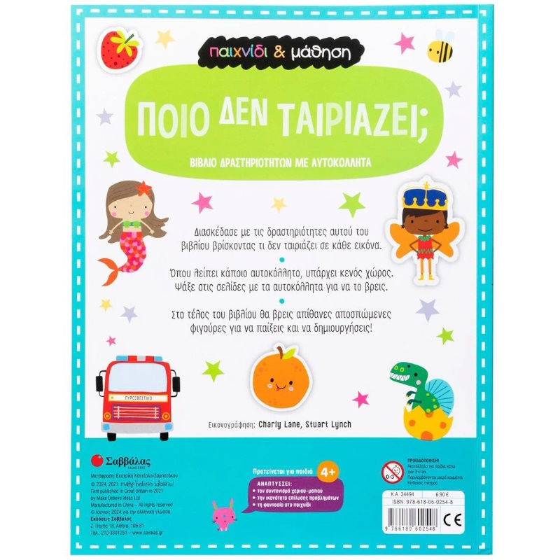 Όπου λείπει κάποιο αυτοκόλλητο, υπάρχει κενός χώρος. Ψάξε στις σελίδες με τα αυτοκόλλητα για να το βρεις. Στο τέλος του βιβλίου θα βρεις απίθανες αποσπώμενες φιγούρες για να παίξεις και να δημιουργήσεις!