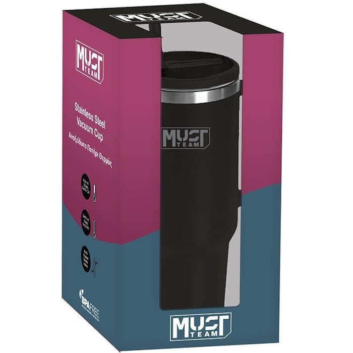Must Team Ποτήρι Θερμός Ανοξείδωτο με Καλαμάκι 1200ml - Μαύρο