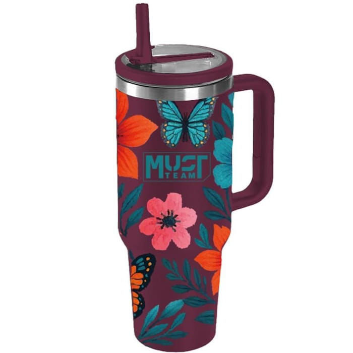 Πρόκειται για την Bordeaux Floral εκδοχή του μεγάλου ποτηριού-θερμός της Must. Ξεχωρίζει για το βαθύ μπορντό χρώμα του που διακοσμείται με φλοράλ μοτίβα (λουλούδια/πεταλούδες), προσφέροντας μια πιο ιδιαίτερη αισθητική σε σχέση με τα μονόχρωμα.