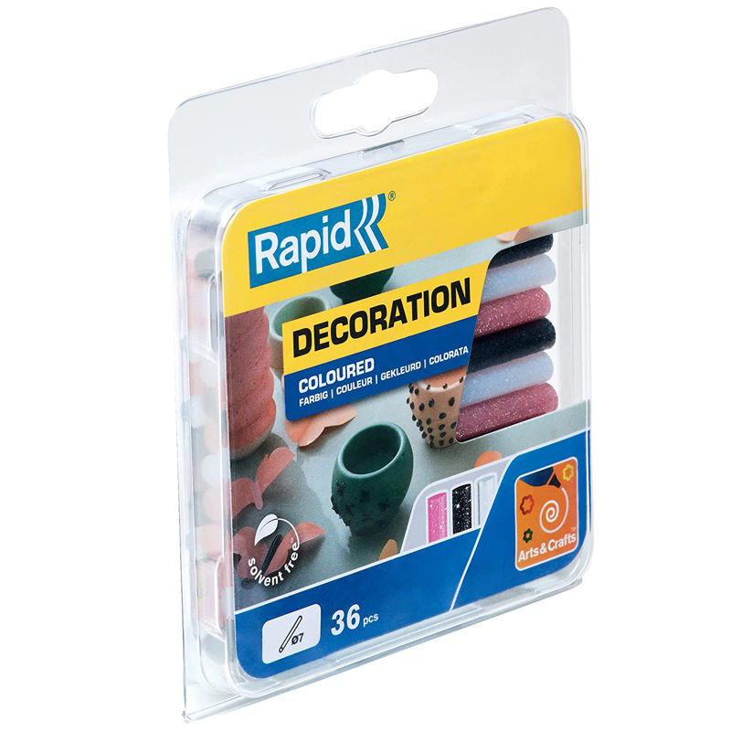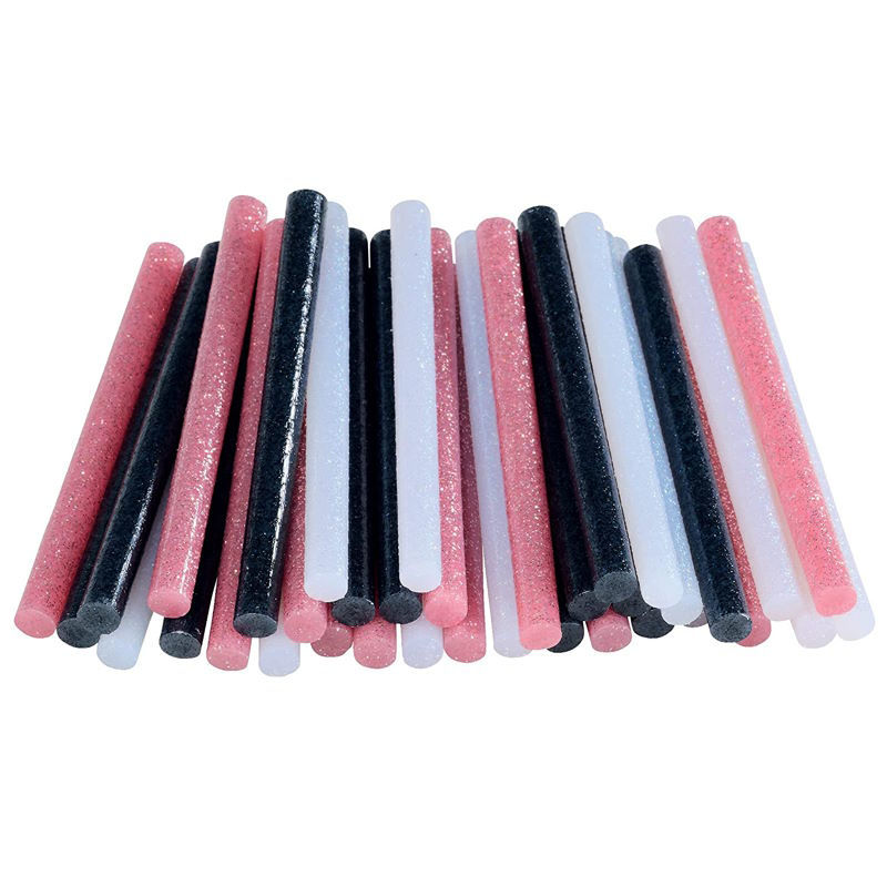 Περιεχόμενα κουτιού: Στικς ταχείας θερμής κόλλας 36 τεμάχιων σε λευκό, ροζ και μαύρο glitter