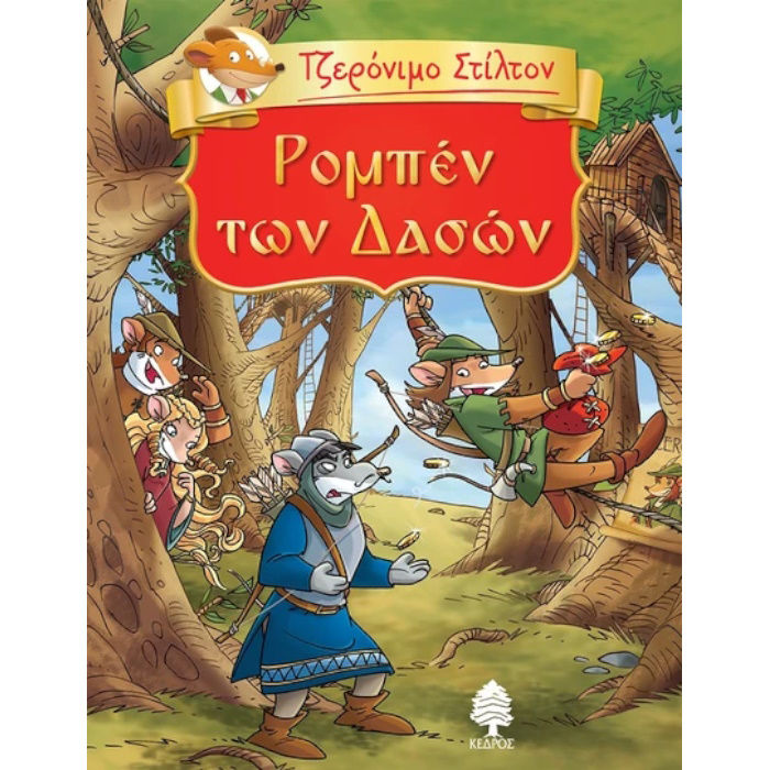Αγαπημένα μου ποντικάκια, Πρέπει να σας πω ότι το πάθος μου για τη λογοτεχνία άρχισε πριν από πάρα πολύ καιρό, όταν ήμουν ακόμα μικρός. Περνούσα άπειρες ώρες διαβάζοντας υπέροχα μυθιστορήματα, που με έκαναν να ζήσω φανταστικές περιπέτειες και να γνωρίσω μακρινούς και μυστηριώδεις τόπους. Είναι αλήθεια ότι το διάβασμα δίνει φτερά στη φαντασία! Έτσι, σκέφτηκα να διηγηθώ και σ’ εσάς τα αριστουργήματα της κλασικής λογοτεχνίας, και να μοιραστώ μαζί σας αυτές τις συγκινήσεις των παιδικών μου χρόνων. Στο δάσος του Σέργουντ μια ομάδα από θαρραλέους άντρες και γυναίκες, με αρχηγό τον Ρομπέν των Δασών, αντιστέκεται στις αδικίες και στην καταπίεση του δόλιου σερίφη του Νότιγχαμ και του πρίγκιπα Ιωάννη. Με ενέδρες, μεταμφιέσεις και εντυπωσιακές μάχες καβάλα στο άλογο, ο Ρομπέν κλέβει από τους πλούσιους και χαρίζει στους φτωχούς, βοηθώντας να θριαμβεύσει η δικαιοσύνη ενώ ο λαός περιμένει την επιστροφή του βασιλιά, του Ριχάρδου του Λεοντόκαρδου. Τζερόνιμο Στίλτον