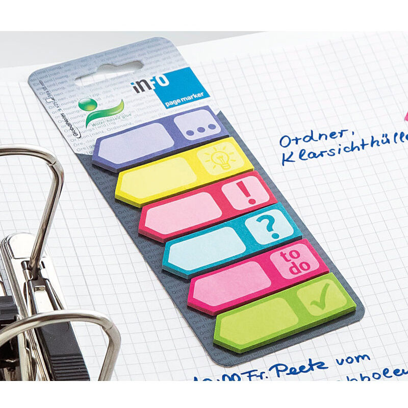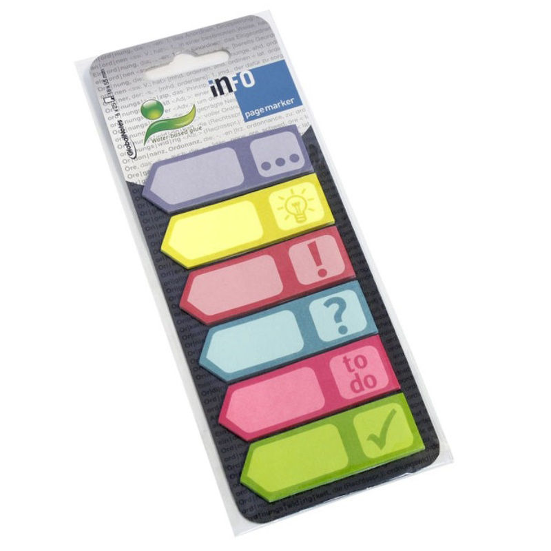 info notes σελιδοδείκτες σε 6 χρώματα βέλος με σχέδια 6x18x55mm 6x25φ