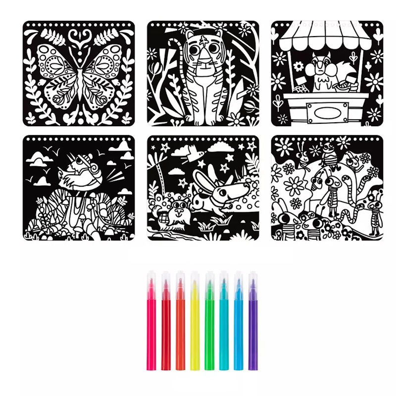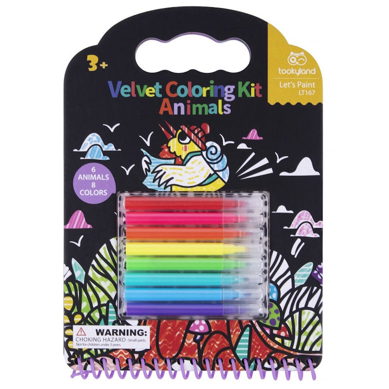Το σετ ζωγραφικής σε βελούδο ζώα θα ενθουσιάσει τους μικρούς μας καλλιτέχνες. Περιλαμβάνει 6 σελίδες για χρωματισμό με ζωάκια και 8 μαρκαδόρους σε διαφορετικά χρώματα. Οι σελίδες του σετ διαθέτουν τρύπες στο πάνω μέρος τους, ώστε να μπορούν να κοπούν εύκολα. Έχουν βελούδινη υφή και όταν χρωματιστούν αποκαλύπτονται σχέδια ως δια μαγείας. Το σετ ζωγραφικής διαθέτει λαβή στο πάνω μέρος, έτσι ώστε να είναι εύκολο στη μεταφορά.