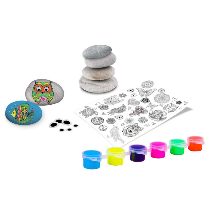 Το Grafix Rock Painting Set είναι ένα πλήρες σετ χειροτεχνίας με 4 φυσικές λείες πέτρες, 6 χρώματα, 1 πινέλο, κινούμενα μάτια, 1 φύλλο με 30 αυτοκόλλητες πέρλες και 1 φύλλο με αυτοκόλλητα σχέδια, ώστε τα παιδιά να τα βάψουν ή να διακοσμήσουν όπως επιθυμούν, κατάλληλη για ηλικίες 5+ ετών, με οδηγίες & στοιχεία ασφαλείας κατάλληλα για παιδική χρήση.