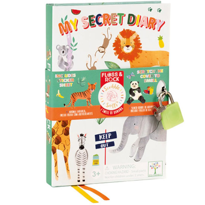 Πω πω… ένα άρωμα και ΜΥΣΤΙΚΟ ημερολόγιο. Αυτό το μυστικό ημερολόγιο με θέμα τους Φαντασία μυρίζει Ανανά. Απλά ξύστε το κάλυμμα και θα αποκαλύψετε το άρωμα. Περιλαμβάνει λουκέτο και κλειδί ΚΑΙ ένα διασκεδαστικό φύλλο με αυτοκόλλητα και πολλά άλλα. Υπάρχουν επίσης πολύχρωμες κορδέλες σελιδοδείκτες. Οι σελίδες είναι με γραμμές. Ιδανικό για ταξίδια και εξόδους.