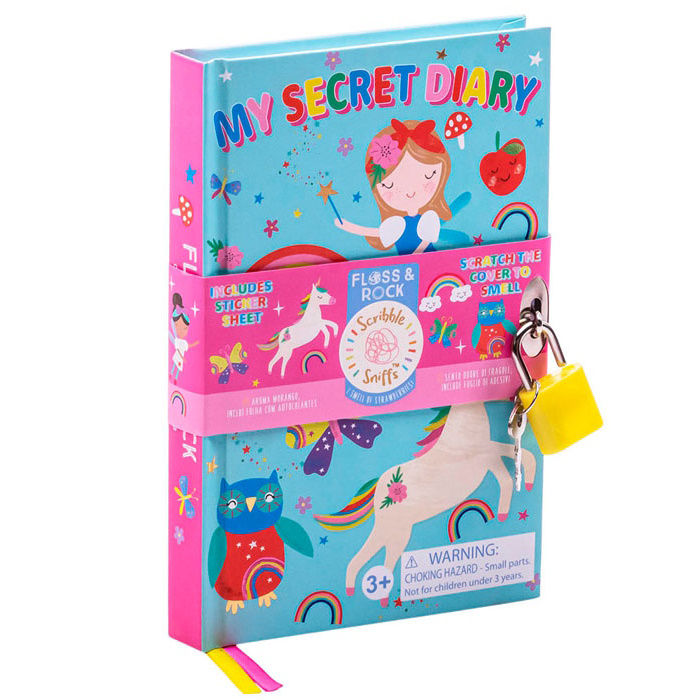 Πω πω… ένα άρωμα και ΜΥΣΤΙΚΟ ημερολόγιο. Αυτό το μυστικό ημερολόγιο με θέμα τους Φαντασία μυρίζει Ανανά. Απλά ξύστε το κάλυμμα και θα αποκαλύψετε το άρωμα. Περιλαμβάνει λουκέτο και κλειδί ΚΑΙ ένα διασκεδαστικό φύλλο με αυτοκόλλητα Γοργόνες, Μονόκερους και πολλά άλλα. Υπάρχουν επίσης πολύχρωμες κορδέλες σελιδοδείκτες. Οι σελίδες είναι με γραμμές. Ιδανικό για ταξίδια και εξόδους.