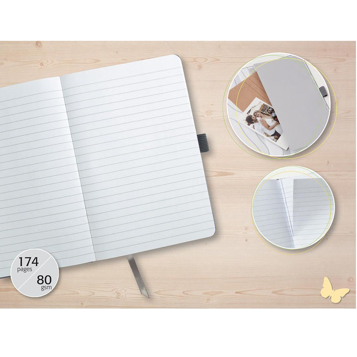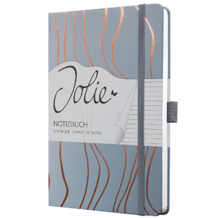 Νότες όμορφα συσκευασμένες και πάντα διαθέσιμες - με το μοντέρνο σημειωματάριο Jolie, με επένδυση σε σχήμα περίπου Α5 (13,5 x 20,3 cm) με 174 σελίδες (16 φύλλα από τα οποία είναι διάτρητα). Το στιβαρό σκληρό εξώφυλλο εγγυάται σταθερότητα κατά τη γραφή