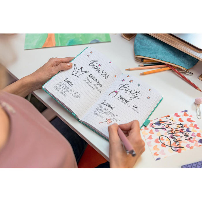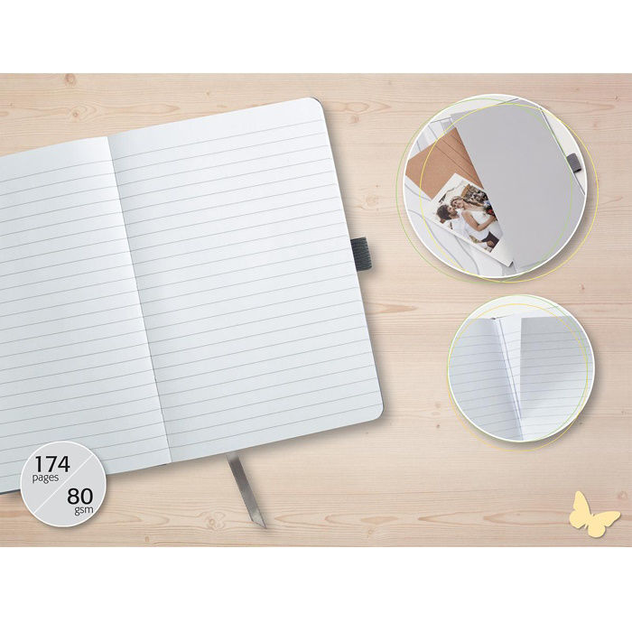 Νότες όμορφα συσκευασμένες και πάντα διαθέσιμες - με το μοντέρνο σημειωματάριο Jolie, με επένδυση σε σχήμα περίπου Α5 (13,5 x 20,3 cm) με 174 σελίδες (16 φύλλα από τα οποία είναι διάτρητα). Το στιβαρό σκληρό εξώφυλλο εγγυάται σταθερότητα κατά τη γραφή