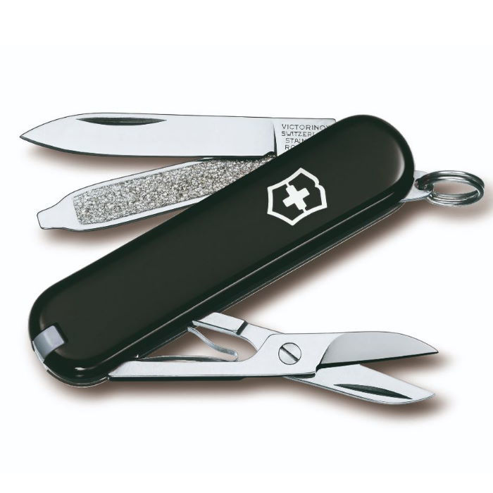1. Λεπίδα 2. Λίμα με 3. -κατσαβίδι 4. Ψαλίδι 5. Ανοξείδωτος κρίκος μπρελόκ 6. Τσιμπιδάκι 7. Οδοντογλυφίδα