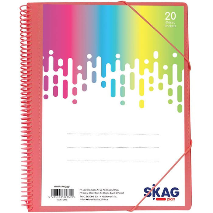 Σουπλ σπιράλ Skag Α4 20 ζελατίνες neon 6 χρωμάτων 300599