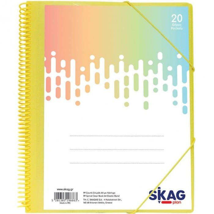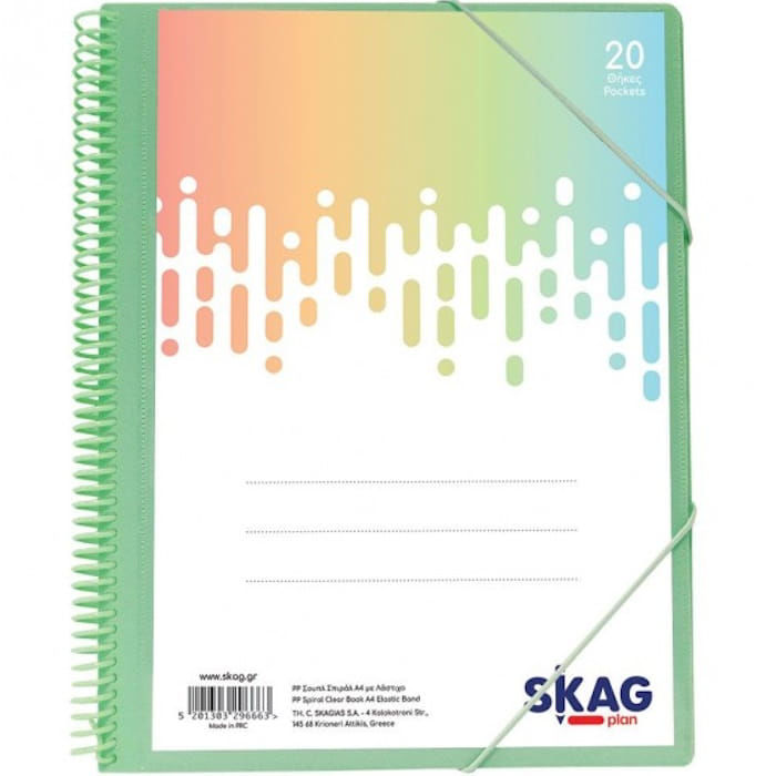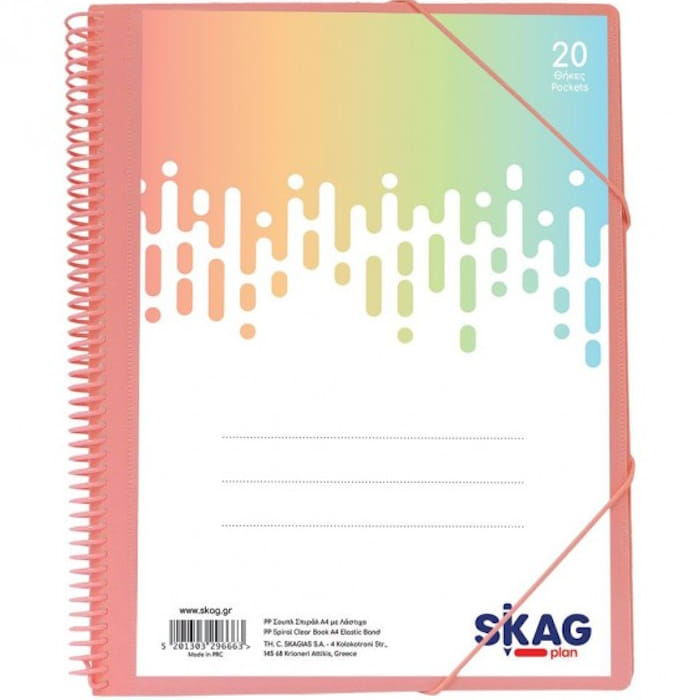 Το ντοσιέ παρουσίασης (σουπλ) με σπιράλ της Skag, προσφέρει την ιδανική λύση για την ασφαλή και κομψή αρχειοθέτηση των εγγράφων σας, ξεχωρίζοντας χάρη στις απαλές pastel αποχρώσεις του.