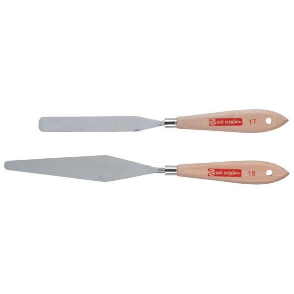Σπάτουλες καλλιτεχνίας 2 τεμαχίων μεταλλικής παλέτας. Λόγω του μακρύ, ίσιο σχήμα τους είναι ιδανικά για την προετοιμασία και την ανάμειξη χρωμάτων και για τον καθαρισμό της επιφάνειας της παλέτας σας. Κατάλληλο με χρώματα λαδιού και ακρυλικού.