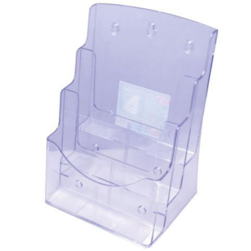 Σταντ παρουσίασης εντύπων διαστάσεων A4 με 3 θέσεις. Κατάλληλο για ξενοδοχεία, γραφεία, σχολεία, συνέδρια, εστιατόρια κ.α. Μπορεί να τοποθετηθεί και στον τοίχο.