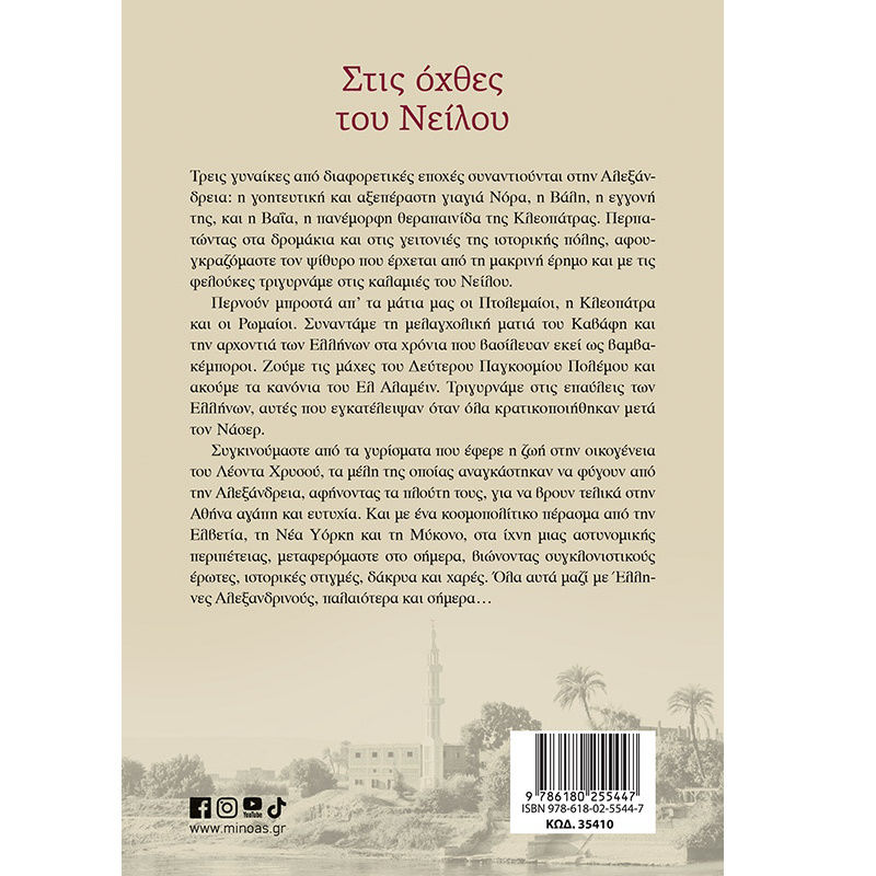Περνούν μπροστά απ’ τα μάτια μας οι Πτολεμαίοι, η Κλεοπάτρα και οι Ρωμαίοι. Συναντάμε τη μελαγχολική ματιά του Καβάφη και την αρχοντιά των Ελλήνων στα χρόνια που βασίλευαν εκεί ως βαμβακέμποροι. Ζούμε τις μάχες του Δεύτερου Παγκοσμίου Πολέμου και ακούμε τα κανόνια του Ελ Αλαμέιν. Τριγυρνάμε στις επαύλεις των Ελλήνων, αυτές που εγκατέλειψαν όταν όλα κρατικοποιήθηκαν μετά τον Νάσερ.