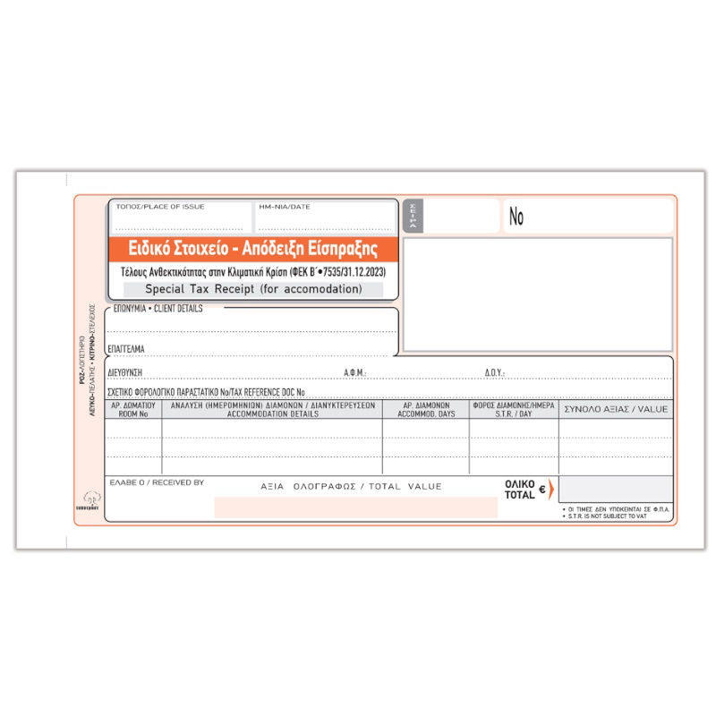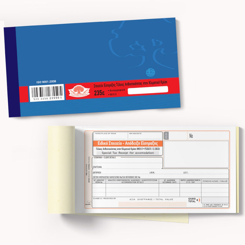 Τριπλότυπη Απόδειξη Ειδικό Στοιχείο Είσπραξης φόρου Διαμονής - 235ε