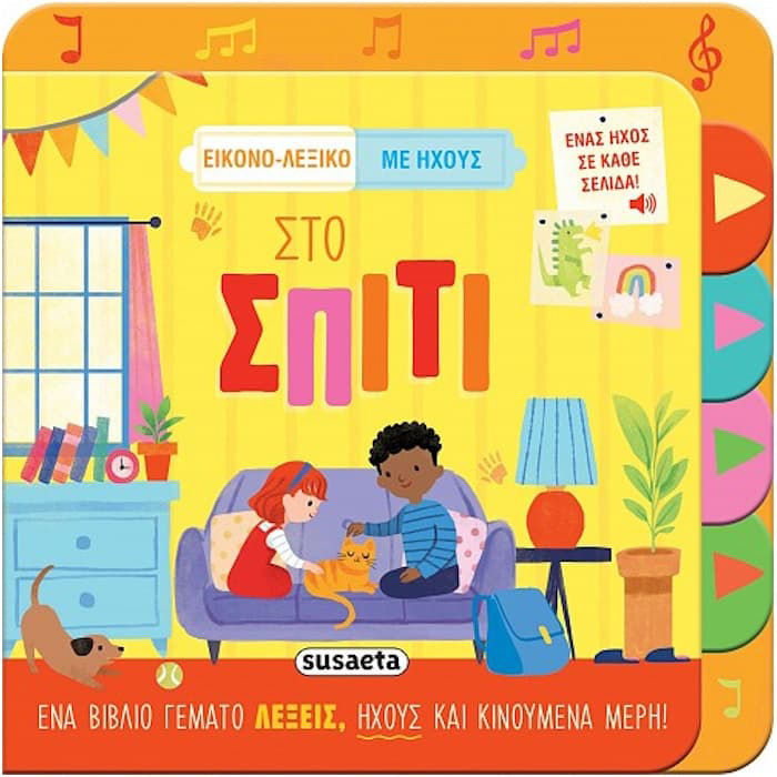Παρέα με αυτό το βιβλίο θα κάνουμε μια βόλτα στο σπίτι για να γνωρίσουμε όλους τους χώρους του και να ψάξουμε τα χαμένα ζωάκια και αντικείμενα. Τράβηξε τους χρωματιστούς σελιδοδείκτες σε κάθε σελίδα για να ακούσεις έναν ήχο-έκπληξη και μάθε πολλές καινούριες λέξεις για το σπίτι!