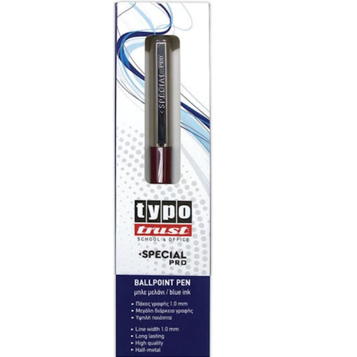 - Τύπος: Στυλό διαρκείας μπλε με μπίλια και μηχανισμό πίεσης