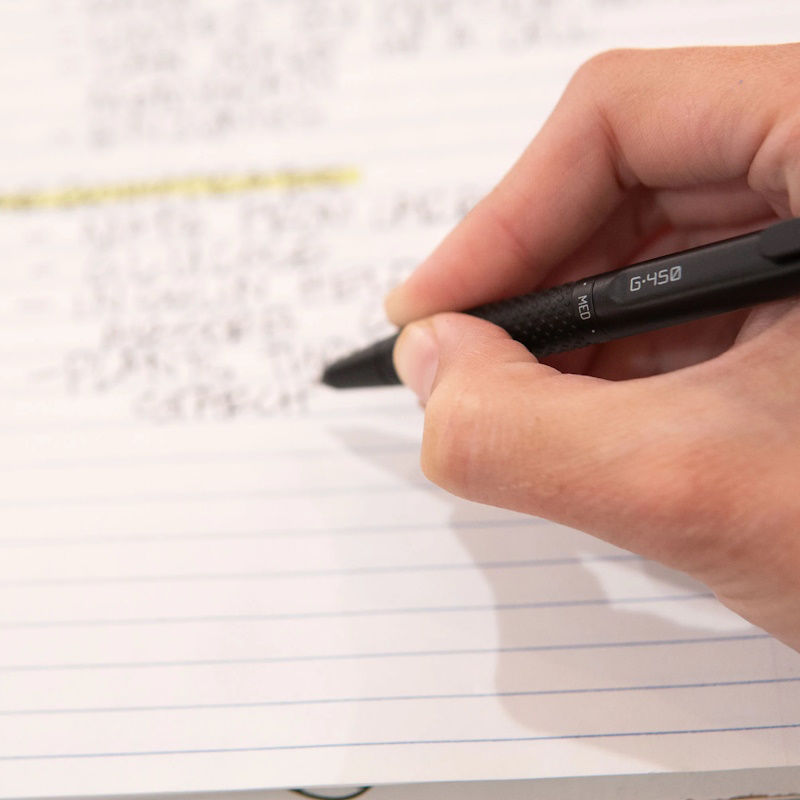 Το Zebra Pen G-450 Retractable Gel Pen σας δίνει την απαλότητα ενός στυλό με μελάνι gel χωρίς τις ανησυχίες για μουτζούρες και κηλίδες. Η τεχνολογία Rapid Dry Ink (RDI) έχει δοκιμαστεί από ένα τρίτο εργαστήριο ώστε να έχει ίσο ή ταχύτερο χρόνο στεγνώματος με τους κορυφαίους του κλάδου σε εννέα κοινές επιφάνειες γραφής, καθιστώντας το το απόλυτο στυλό γρήγορου στεγνώματος. Eίναι τέλειο για καθημερινή γραφή, υπογραφές εγγράφων και δημιουργική έκφραση. Αυτό το στυλό διαθέτει κομψό μαύρο ορειχάλκινο, με άνετη λαβή από καουτσούκ και βολικό κλιπ τσέπης.