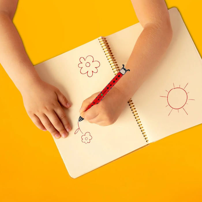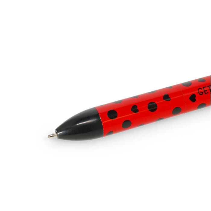 Η ποιότητα κατασκευής της Legami εξασφαλίζει μια εξαιρετικά ομαλή εμπειρία γραφής χάρη στη μύτη 1.0 χιλιοστού που προσφέρει σταθερή ροή μελανιού χωρίς κενά. Διαθέτει δύο βασικά χρώματα, μαύρο και κόκκινο, τα οποία εναλλάσσονται μέσω του αξιόπιστου μηχανισμού click and clack που αντέχει στη συνεχή χρήση. Το σώμα του στυλό είναι εργονομικά σχεδιασμένο για ξεκούραστο κράτημα, ενώ η τρισδιάστατη πασχαλίτσα στην κορυφή προσθέτει μια μοναδική αισθητική που χαρακτηρίζει τα προϊόντα γραφικής ύλης της εταιρείας.