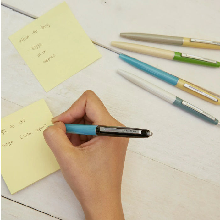 Τα στυλό συνοδεύονται από διασκεδαστικούς συνδυασμούς χρωμάτων σε μπλε και πράσινο και διαχρονικό ρετρό στυλ.
