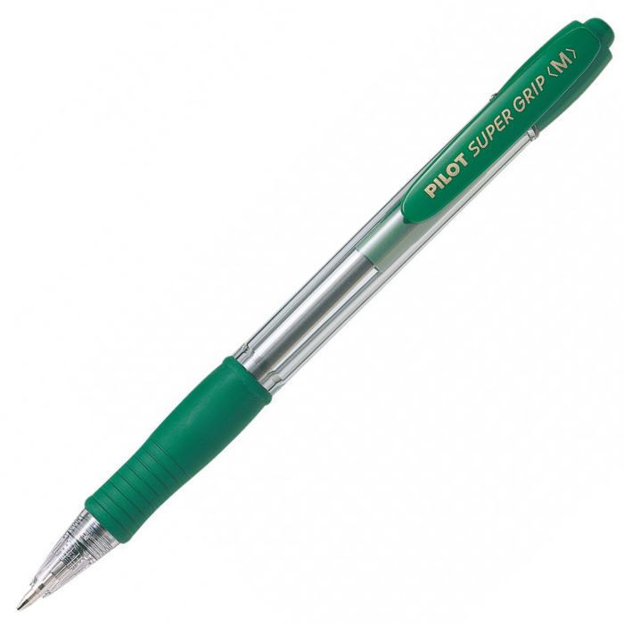 Στυλό Pilot Super Grip Medium πράσινο με κλικ, εργονομική λαστιχένια λαβή και ομαλή γραφή.