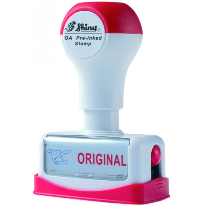 Αυτόματη σφραγίδα πλαστική, αυτομελανούμενη, με την λέξη "ΚΑΤΕΧΩΡΗΘΗ", διάστασης 3,8 cm, από την εταιρεία shiny. Το ταμπόν της είναι έτοιμο για χρήση με ένα χρώμα μελανιού. Όταν τελειώσει το μελάνι, πατώντας τα κουμπιά στις δύο άκρες της το ταμπόν αποσπάτε και ξαναγεμίζεται με το ειδικό της μελάνι.