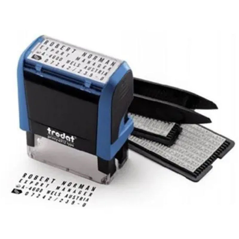 Δημιουργήστε το δικό σας κείμενο χρησιμοποιώντας αυτή τη Trodat 4911. Σφραγίδα με 3 γραμμές 38 x 14 mm Αυτά τα πακέτα περιλαμβάνουν τα γραμματόσημα κεφαλαία γράμματα, αριθμούς και σύμβολα, ώστε να μπορείτε να κάνετε ένα ατελείωτο ποσό των μηνυμάτων που είναι μοναδική για εσάς. Το κιτ περιλαμβάνει επίσης τσιμπιδάκια για εύκολο χειρισμό των χαρακτήρων.