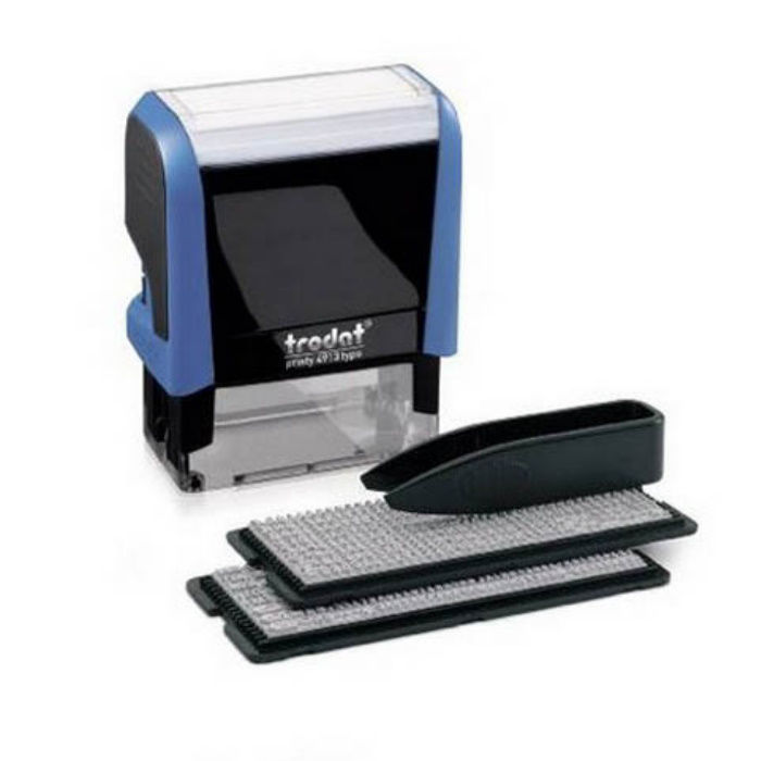 Δημιουργήστε το δικό σας κείμενο χρησιμοποιώντας αυτή τη Trodat 4913. Σφραγίδα με 1-5 γραμμές 58 x 22mm Αυτά τα πακέτα περιλαμβάνουν τα γραμματόσημα κεφαλαία γράμματα, αριθμούς και σύμβολα στα λατινικά, ώστε να μπορείτε να κάνετε ένα ατελείωτο ποσό των μηνυμάτων που είναι μοναδική για εσάς. Το κιτ περιλαμβάνει επίσης τσιμπιδάκια για εύκολο χειρισμό των χαρακτήρων.