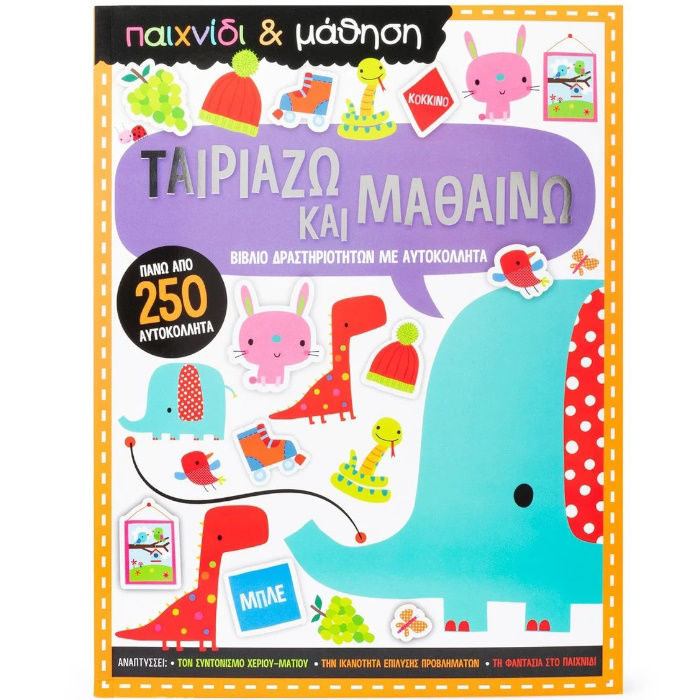 Βιβλίο δραστηριοτήτων με πάνω από 250 αυτοκόλλητα.