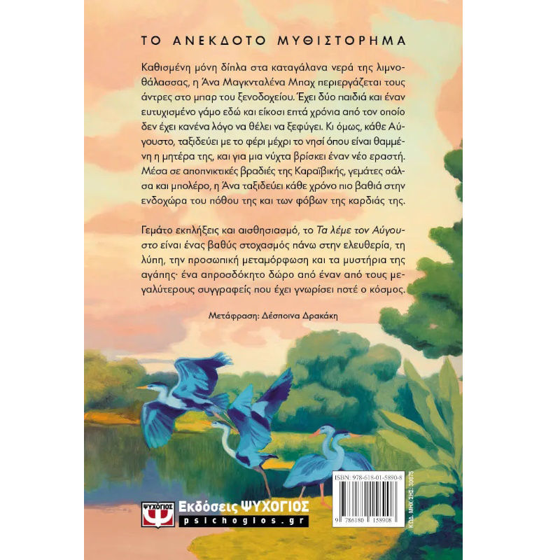 Γεμάτο εκπλήξεις και συναισθηματισμό, το Τα λέμε τον Αύγουστο είναι ένας βαθύς στοχασμός πάνω στην ελευθερία, τη λύπη, την προσωπική μεταμόρφωση και τα μυστήρια της αγάπης· ένα απροσδόκητο δώρο από έναν από τους μεγαλύτερους συγγραφείς που έχει γνωρίσει ποτέ ο κόσμος.