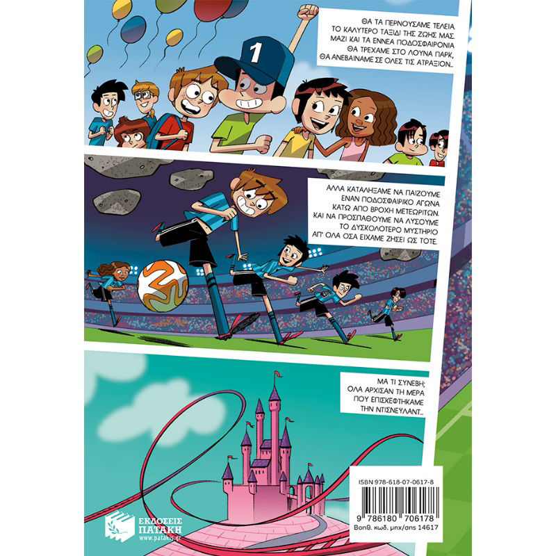 Φαίνεται απίστευτο μετά από όλα όσα μας έχουν συμβεί, αλλά είμαστε στο Παρίσι! Και το καλύτερο είναι ότι είμαστε οι επίτιμοι καλεσμένοι στα εγκαίνια μιας νέας ατραξιόν της Ντίσνεϋλαντ: της βροχής μετεωριτών. Εντάξει, στην πραγματικότητα είμαστε οι αντικαταστάτες των επίτιμων καλεσμένων, αλλά δεν πειράζει. Θα παίξουμε έναν αγώνα ποδοσφαίρου με τη γαλλική ομάδα κάτω από βροχή μετεωριτών και θα διεκδικήσουμε το κύπελλο. Ένα χρυσό κύπελλο! Παρεμπιπτόντως, πού είναι το κύπελλο;