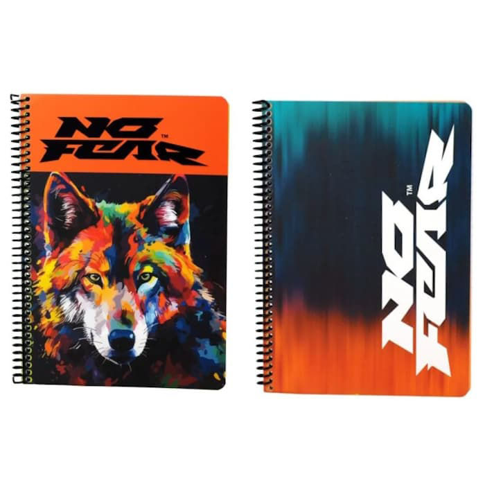 Απελευθέρωσε τη δυναμική σου πλευρά με το Τετράδιο Σπιράλ 2 Θεμάτων Colored Wolf & Gradient Blue από τη No Fear. Αυτό το τετράδιο σου προσφέρει δύο μοναδικά σχέδια για να διαλέξεις αυτό που εκφράζει την προσωπικότητά σου. Από τη μία, ένα εντυπωσιακό "Colored Wolf" με έναν πολύχρωμο, γεωμετρικό λύκο που αποπνέει δύναμη, και από την άλλη, ένα κομψό "Gradient Blue" με μια απαλή μπλε διαβάθμιση για ένα πιο minimal και μοντέρνο look.