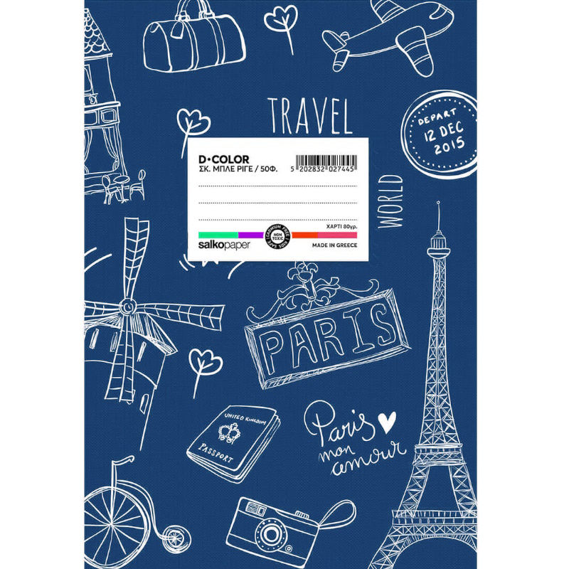 Τετράδιο d-color ριγέ σκ. μπλε 50φ. 17x25cm Salko