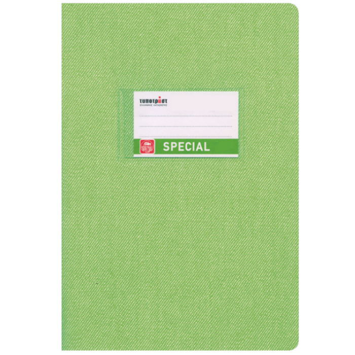 Special Τετράδιο 50 φύλλων, διάστασης 17x25cm με χρωματιστό εξώφυλλο τύπου “DENIM” Τα φύλλα είναι από εξαιρετικής ποιότητας χαρτί 70γρ. και η γραμμογράφηση είναι ριγέ με σωστές αποστάσεις. Έχει στρογγυλεμένες γωνίες και προεκτυπωμένη ετικέτα 2 όψεων σε ματ χαρτί η οποία βγαίνει εύκολα χάρη στην εγκοπή. Διατίθεται σε 9 χρώματα (σκούρο μπλε, κόκκινο, πράσινο, μωβ, κίτρινο, πορτοκαλί, λαχανί, γαλάζιο, γκρι).