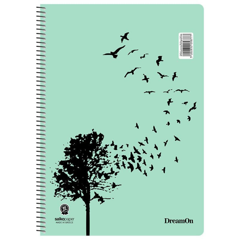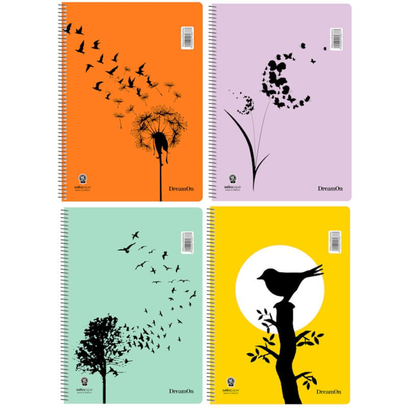 Η σειρά τετραδίων Salko Dream On ξεχωρίζει για τα καλλιτεχνικά της εξώφυλλα που αποπνέουν φαντασία και ελευθερία. Σχέδια με πικραλίδες που σκορπούν στον αέρα, δέντρα που μεταμορφώνονται σε πουλιά, λουλούδια που μοιάζουν να ζωντανεύουν και πουλιά σε ηλιόλουστο φόντο κάνουν κάθε τετράδιο μοναδικό.