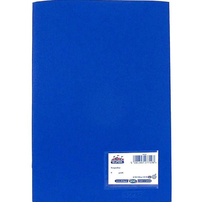 Τετράδιο Α4 Super 50 φύλλων. Με μπλε πλαστικό εξώφυλλο που δεν περιέχει κάδμιο, διότι είναι από πιστοποιημένους ευρωπαϊκούς οίκους βάση της ευρωπαϊκής οδηγίας REACH.
