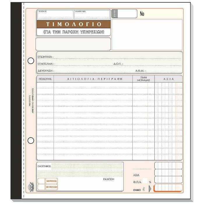Τιμολόγιο παροχής υπηρεσιών 50x2 285 Τυποτράστ