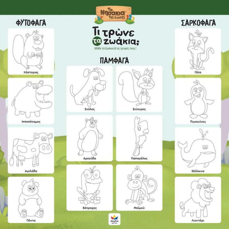 Περιέχει και εκπαιδευτική χειροτεχνία, με την οποία τα παιδιά ζωγραφίζοντας μαθαίνουν να χωρίζουν τα ζωάκια σε φυτοφάγα, σαρκοφάγα και παμφάγα.